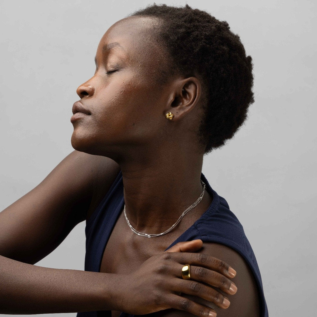 Mix av former & storlekar: Kombinera minimalistiska runda studs med geometriska former eller asymmetriska designs för en look med mer djup och attityd.