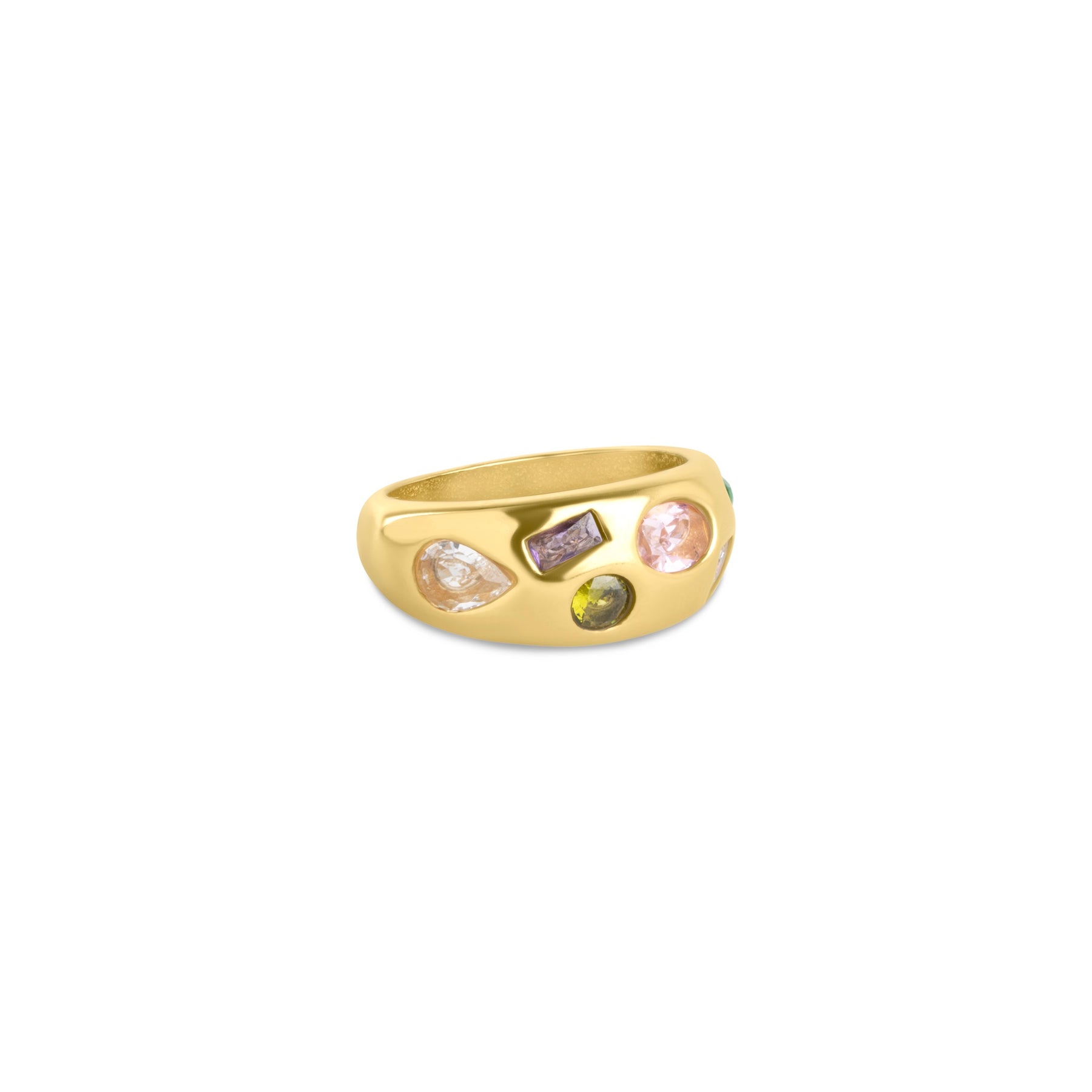 En vågad men cute kupolformad ring med kristaller, tillverkad i vattentåligt rostfritt stål.
